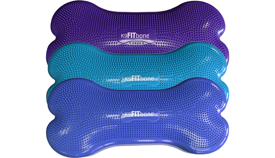 Designed to be used for weight bearing activities and balance training for companion pets, sporting and working dogs, or for animal rehabilitation and therapy. It has two training surfaces: a flat, smooth surface and a textured surface. Balance difficulty can be easily adjusted by removing or adding air with an air pump. The K9 FitBone™ is designed to be used inside or or outside. Please ensure the area is clear of sharp objects like rocks, sticks, etc.